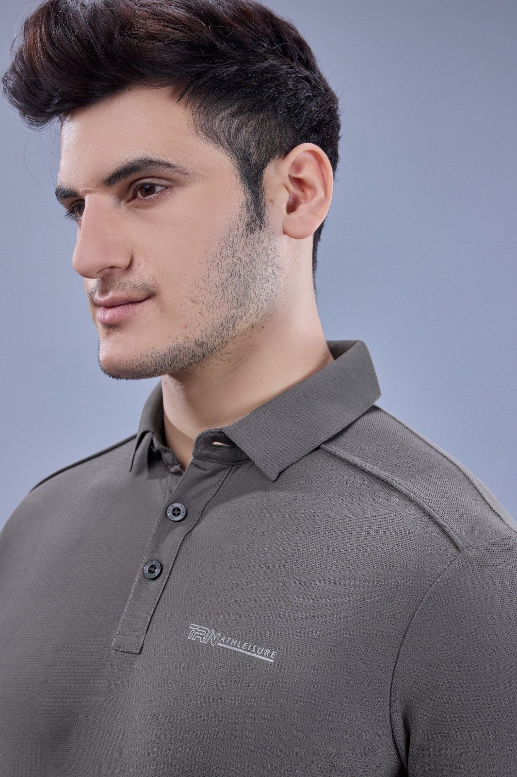 • Classic polo collar neck